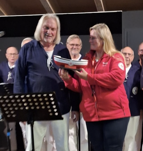 Im Rahmen der Veranstaltung überreichte die Hooksielerin Sabine Greiff (Foto), ehrenamtliche Unterstützerin der DGzRS, ein Spenden-Sammelschiffchen, an Hartwig Gerdes. Das will der Chor künftig bei jedem seiner Konzerte durch die Zuschauerreihen „fahren“ lassen will – in der Hoffnung auf Spenden für die Rettungsorganisation.