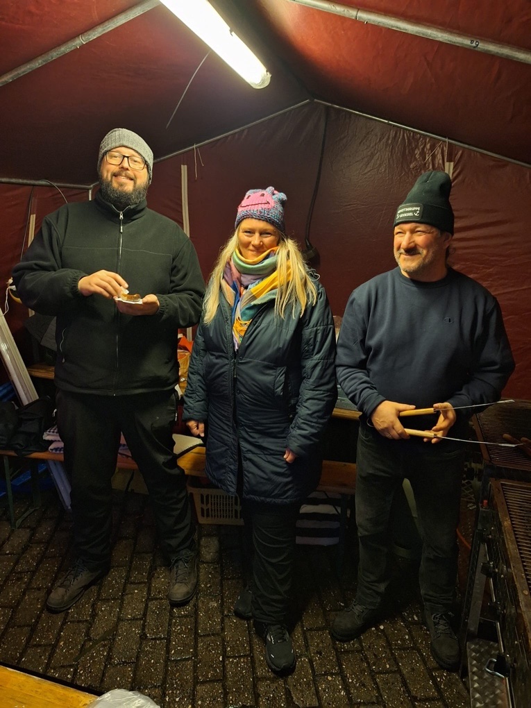 Am Hafen selbst strahlte der bunt geschmückte Tannenbau. Ein Lagerfeuer loderte. Und drumherum waren eine Reihe von Buden aufgebaut, an denen es neben heißen und kalten Getränken eine Menge Leckereien wie Bratwurst, Stockbrot und Reibekuchen, aber auch Weihnachtsdeko zu erstehen gab. Marco Knodel, Vorsitzender der Dorfgemeinschaft, zeigte sich am Sonntag Nachmittag zufrieden. „Das war der beste Weihnachtsmarkt seit langem.“ Und das lag nicht nur an der erfreulich hohen Zahl von Besuchern.
