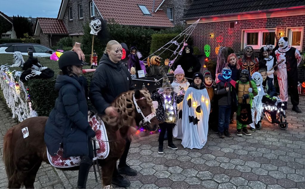 Um bei der Wahrheit zu bleiben: Die meisten so Genötigten gaben ihre Süßigkeiten gern her. Eine ganze Reihe von Bürgern hatten ihre Häuser sogar entsprechend des von Irland über die USA nach Europa zurückgeschwappten, ursprünglich katholischen Brauchtums-Festes geschmückt. Je gruseliger, desto besser. Ein echter Hingucker war auch in diesem Jahr wieder das rundum geschmückte Spuk-Haus der Familie Debels am Altendeich.