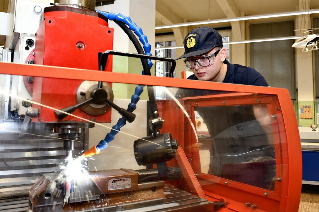 Hooksiel (6. 1. 2025) – In Hooksiel und Umgebung gibt es zahlreiche hochwertige Ausbildungsmöglichkeiten. Wenn nicht im Ort selbst, dann vielleicht nebenan. Zum Beispiel in Wilhelmshaven. Zu denen, die davon profitieren, gehört Bennet Strübbe. Der 21-Jährige Hooksieler erlernt in der Ausbildungswerkstatt des Marinearsenals den Beruf des Industriemechanikers mit Schwerpunkt Instandhaltung – und ist hoch zufrieden.