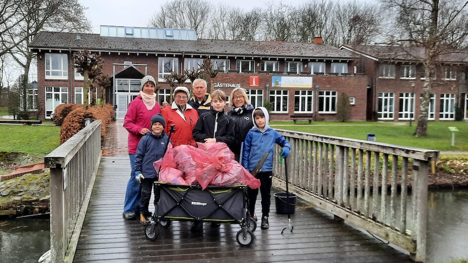 Ein wesentlicher Baustein der Aktion, an der sich in der ganzen Region Wilhelmshaven, Friesland und Wittmund mehrere Tausend Menschen beteiligt haben, ist das Sammeln von Unrat und Müll. Was Kinder der Grundschule schon am Freitag rund ums Schulgelände begonnen hatten, setzten die Erwachsenen im Ort aber auch im Freizeitgelände fort. Die Arbeitsgruppe brachte unter anderem das Batteriegelände um Gästehaus und den Alten Hafen auf Vordermann, Gruppen des Seebadevereins kümmerten sich um Straßen, Wege und Parkplätzen sowie um die zweite Deichlinie.
