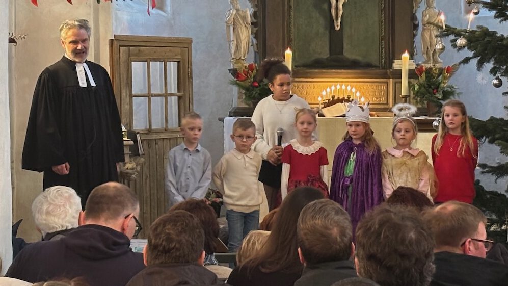 Zuvor hatten der von Barbara Köster geleitete Kinderchor sowie eine große Gruppe von Krippenspielerinnen und Krippenspieler ihr Publikum mit nach Bethlehem genommen, direkt in den Stall, in dem vor über 2000 Jahren Jesus Christus geboren worden ist. Maria und Josef, Hirten und Heilige, natürlich auch Engel wurden lebendig. Toll gesungene Lieder, rührend vorgetragene Texte – Weihnachtsstimmung pur.