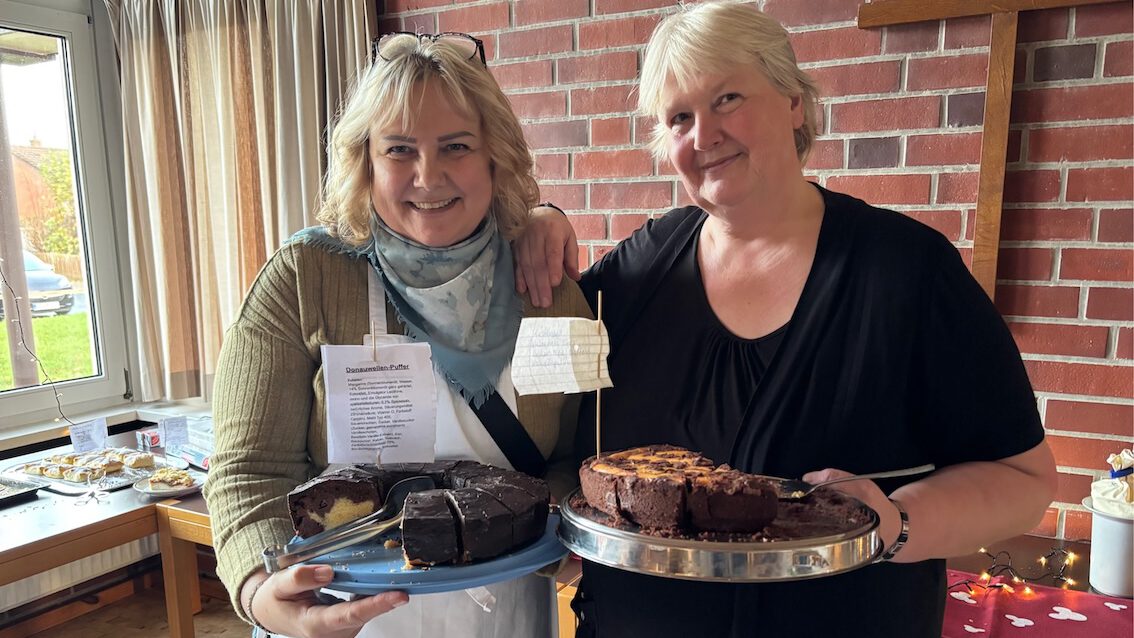 Ein weiterer Höhepunkt, der allein schon den Besuch gelohnt hätte: Das reichlich mit selbst gebackenem Kuchen gefüllte Büffet. Viele Hooksieler kamen hier am Samstag zu einer Plauderstunde bei Tee und Kaffee zusammen und ließen sich durch die adventlichen Angebote inspirieren.