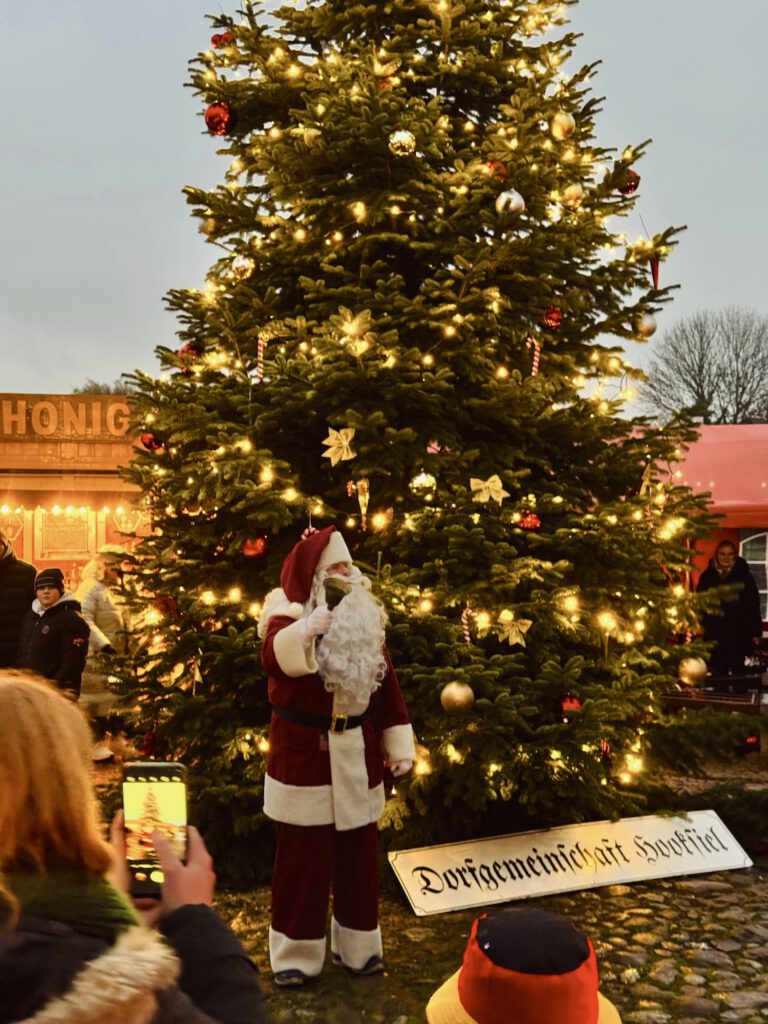 An der Organisation hatten zahlreichen Hooksieler Vereine, Institutionen und Gastronomen aus dem Ort mitgewirkt. Mit dabei waren neben den Aktiven der Dorfgemeinschaft unter anderem De Hooksieler, die Wilhelmshavener Kinderhilfe (WiKi), die Initiative „Weil wir Hooksieler sind“, der Weihnachtsmann natürlich – und ein Schneemann, der vergebens versuchte, den Nieselregen in Schneeflocken umzuwandeln.