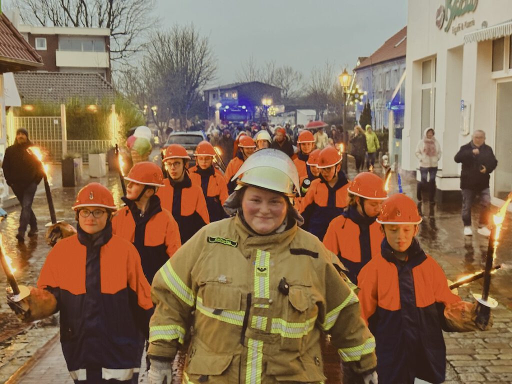 Viele der Jungen und Mädchen hatten sich zuvor mit ihren Laternen dem von der Jugendfeuerwehr Hooksiel angeführten Fackelzug vom Feuerwehrgerätehaus zum Weihnachtsmarkt angeschlossen. Ein stimmungsvoller Umzug quer durch den Ort.