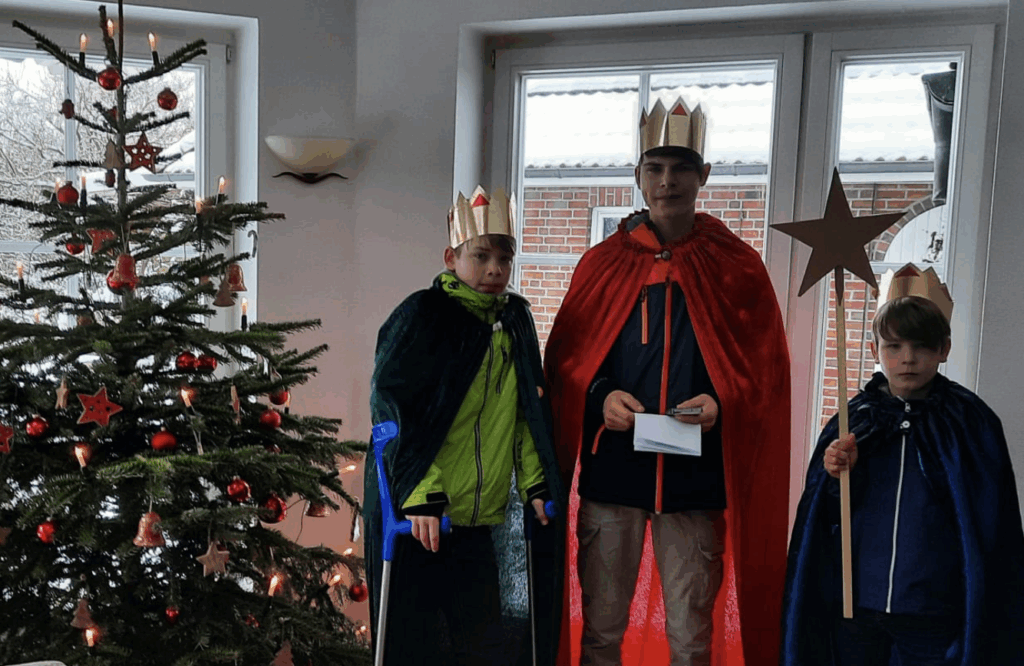 Hooksiel (5. 1. 2026) – Auch diesmal waren traditionell am ersten Sonntag des Jahres die Sternsinger Leo, Benny und Aaron wieder in Hooksiel unterwegs. Schwerpunkt der bundesweiten Aktion ist es, Kindern in Bangladesch zu helfen, die statt eine Schule zu besuchen in vielen Fabriken des Landes billige Produkte herstellen, die unter anderem bei uns dann übers Internet bestellt werden können.