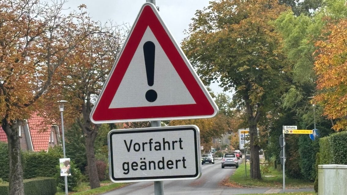 Hooksiel (7. 10. 2025) – Vorsicht in der Lange Straße. Mit der Einrichtung der Tempo-30-Zone hat sich hier im Bereich der Einmündung des Sielhamm die Vorfahrtregelung geändert. Wer vom Verkehrskreisel kommend über den Pakenser Altendeich und die Lange Straße in Richtung Ortsmitte fährt, muss jetzt den von rechts aus dem Sielhamm kommenden Fahrzeugen Vorfahrt gewähren.